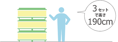 組み立て式なの、組立前は積み重ねてコンパクトに備蓄可能です。